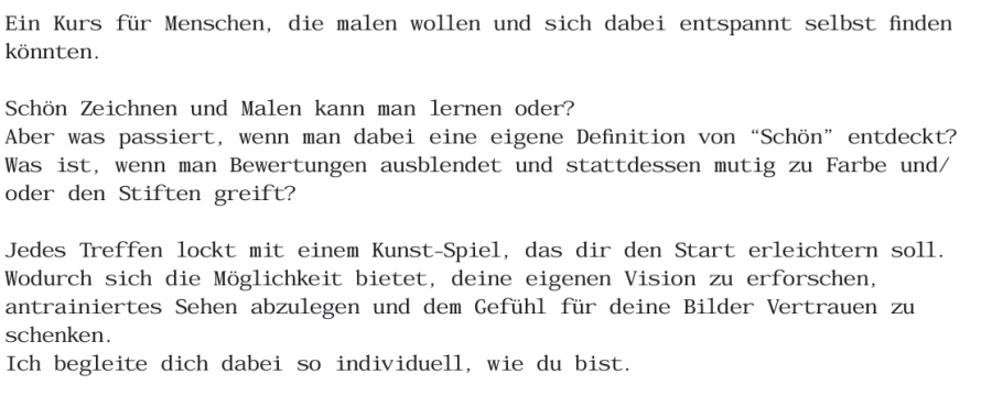 Preis: 136,- Euro für 8 Termine